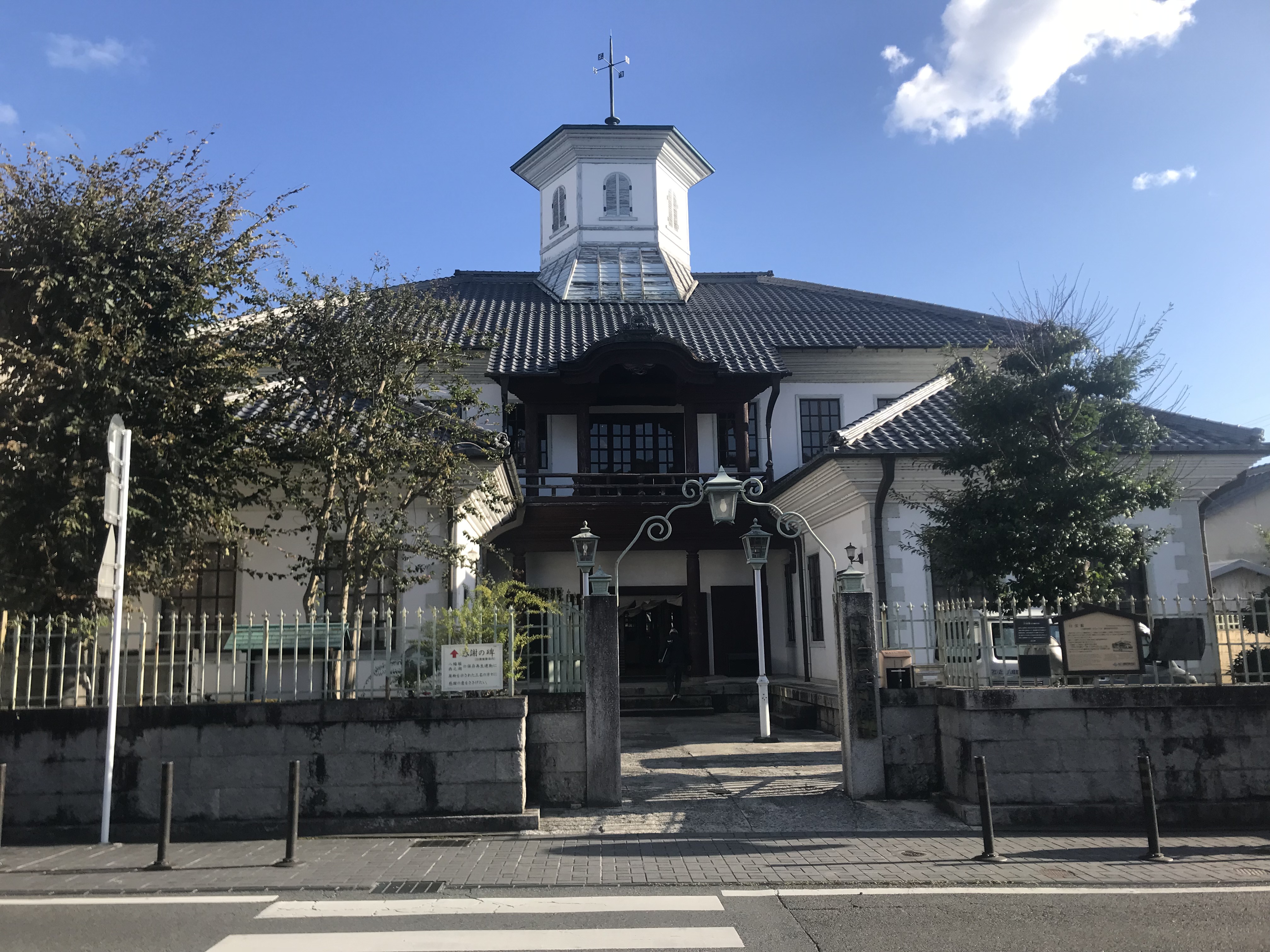 景色の良い川を渡ると日牟禮八幡宮があった。何となく人がそちらに歩いていくので、吸い寄せられるように入っていく。何となく御利益がありそうに感じられる。その八幡宮の向かいには、白雲館という洋風の建物が建っていた。今は観光施設として使われているようだ。更に歩いていくと、ヴォーリズ学園があり、ヴォーリズ記念館もあるとのことだったが、残念ながら閉まっており、見学はできなかった。