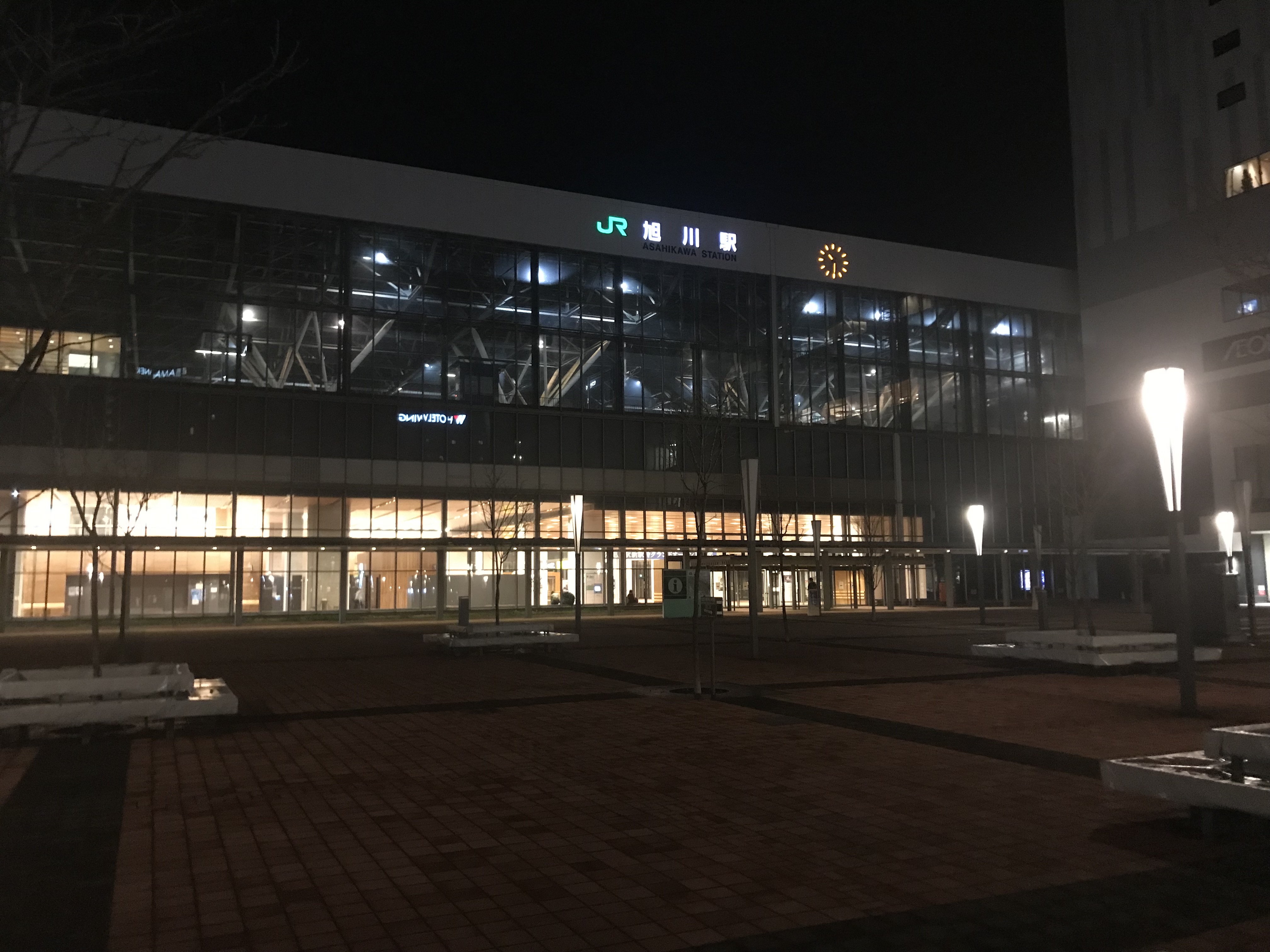 1時間半弱で旭川駅に到着した。かなりきれいな駅舎だった。さすがに北の夜は寒い。今晩は駅前の宿を予約していたが、行ってみるとかなり若者向けな感じの宿で、チェックインも自動で行うようになっており、そのフロアーは広い共有スペースになっている。今日は土曜日の夜で特にお客が多いようだ。大浴場も完備しているが、かなり混んでいた。