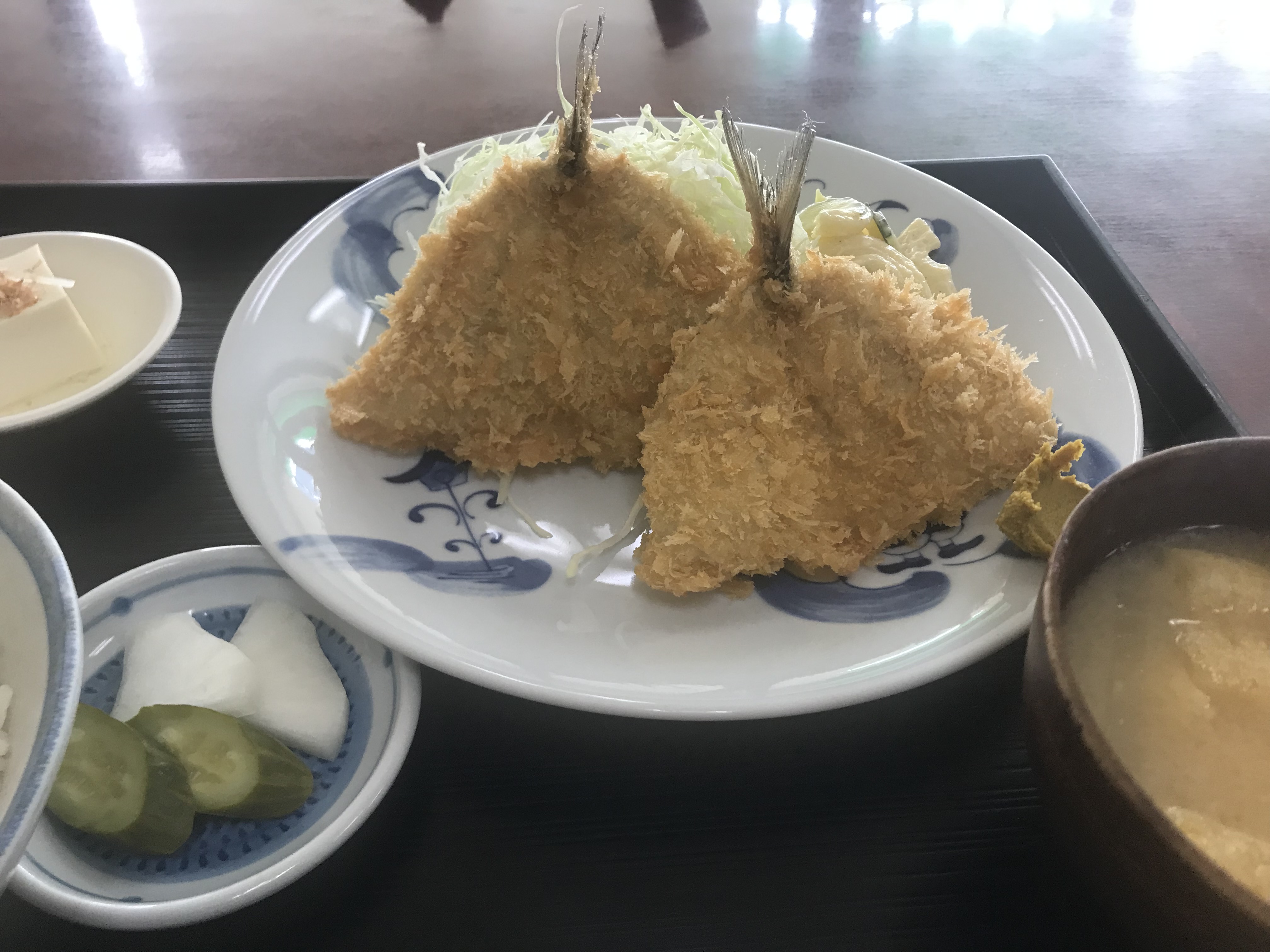 昼前となったので、公園近くの『黒船食堂』に入ってみる。お客は誰もいなかった。この名称の食堂だから、てっきり『ペリーカレー』なんてのがあるのかと思っていたが、全く普通の食堂メニューで逆に好感が持てる。私も普通のアジフライ定食を注文して、美味しく頂いた。