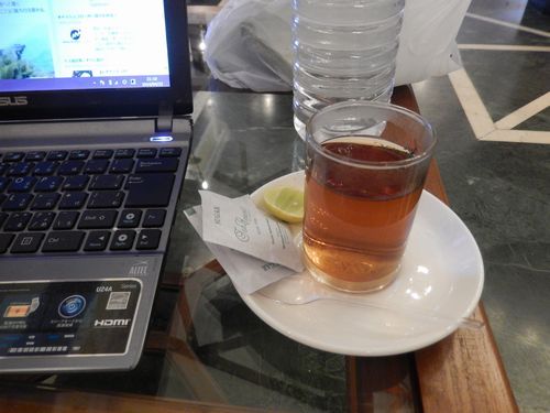 WIFIはロビーでしか使えないということで、まずはPCを開いていると、ウエルカムドリンクとして紅茶がやってきた。高級ホテルだ。敷地は相当に広く、部屋へは庭を歩いて行く。庭はよく手入れされており、花が咲いていた。いくつかの建物に分かれており、その1つの2階に入った。部屋は広く、清潔感がある。ベランダからは周囲が見渡せる。気持ち良いリゾートだった。
