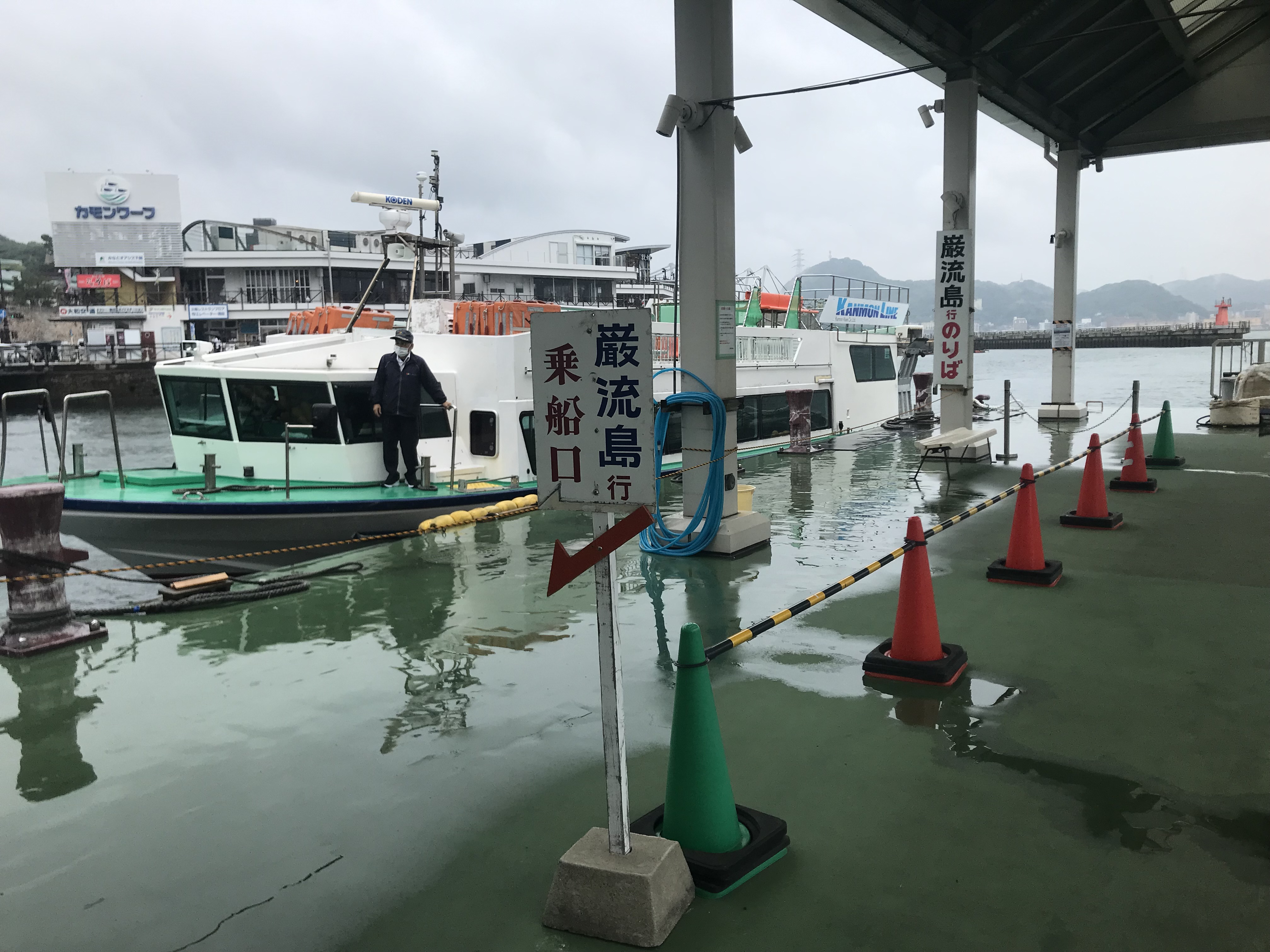 旧英国領事館の建物に入ってみる。1906年に建てられたもので、如何にも英国という感じがした。そしてついに巌流島へ向かう時間が来た。昨日門司港へ行ってしまったので、単純に巌流島往復で900円。小型フェリーで僅か10分、小雨のため乗客は僅か4人。それでも何だか気持ちは高揚する。