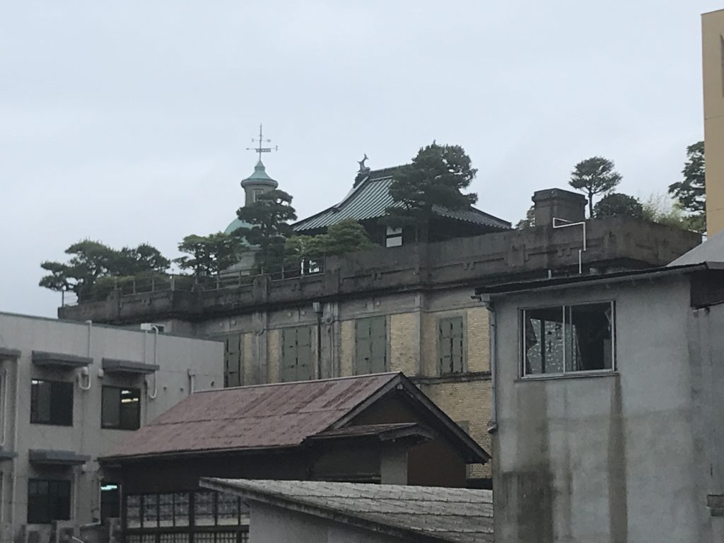 唐戸商店街を歩く。その先には田中絹代文化館(新しい)や旧宮崎商店があった。そこからフェリー乗り場方面へ戻ると、何やら不思議な建物が見えてきた。洋館風なのに、屋上に純日本家屋の屋根が見える。ここは何だろうと急ぎ訪ねてみると、秋田商会ビルだった。大正期に建てられた洋館で、屋上に素晴らしい庭園と日本家屋が現存している、世界的にも珍しい建物であった。