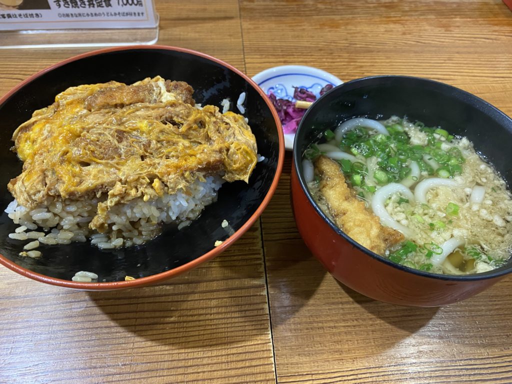 2時間もお店にいた。お茶を飲んですっきりして宿へ戻ると腹が減る。近所にその昔行った店があったので、覗いてみるとおやじさんが一人で営業していた。ちょっと昭和感がある店なのか、フランス人カップルがかつ丼を食べていた。こんなところまでインバウンドはやってくるのか、と驚く。私もかつ丼とうどんのセットを食べて何となく昔を懐かしむ。