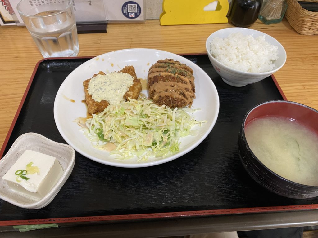 午前に宿をチェックアウトしたが、フライトまで時間があったので、あまり歩いたことがなく地域に足が向く。さっき朝飯食べたのに、なぜか650円の定食に目を引かれ、早めのランチを食べる。チキ南メンチ定食、チキン南蛮とメンチカツのセットを頂く。コスパはいいのだが、何となくカレーのにおい?味?があるような。何と隣はインド料理屋で、しかも厨房を覗くとインド系の人が料理している。あれ、厨房を共有しているのだろうか。