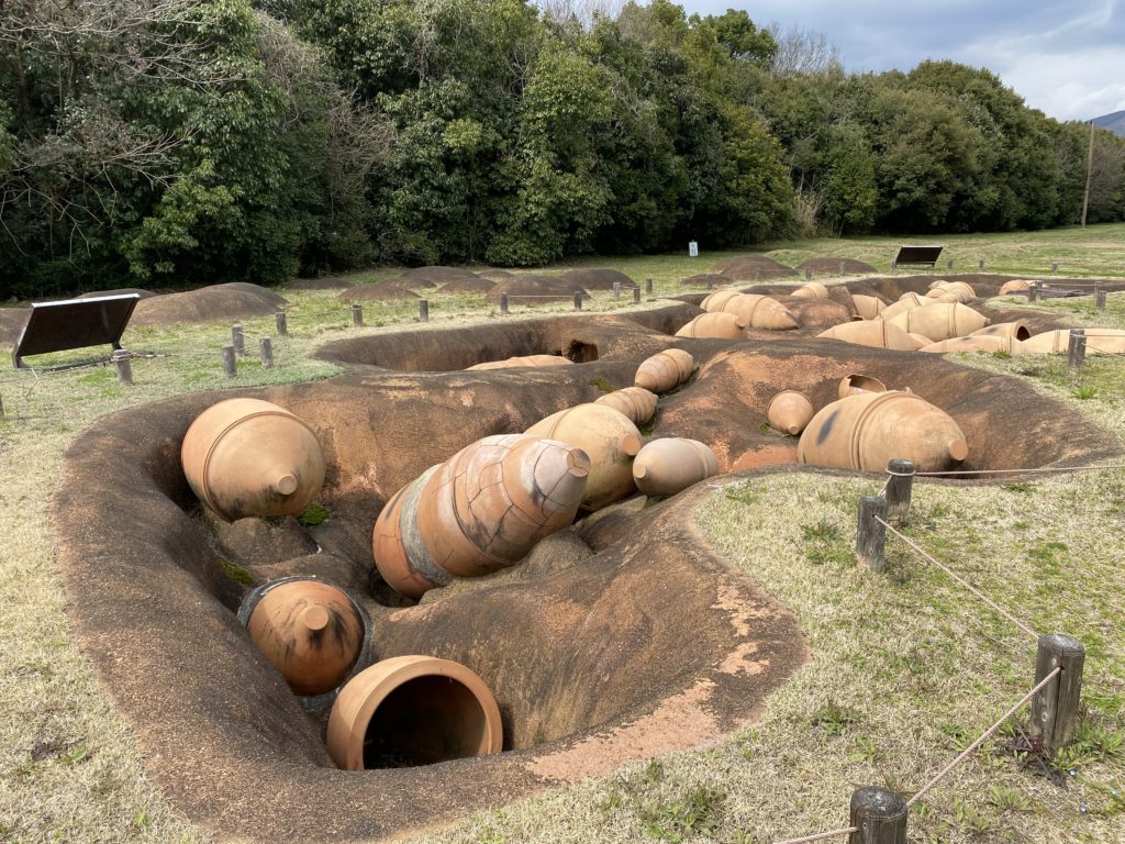 一時はここが邪馬台国かと騒がれたところ。司祭者が重要な決定を行う場などは、我々が教えられてきた卑弥呼の姿を彷彿とさせる。更に歩いて行くと、甕棺墓と呼ばれる墓場があった。ここからは往時の物がそのまま出てきているらしい。吉野ケ里唯一の現物と言っていた。それが納められ、復元されている展示館があった。さすがにここは迫力がある。