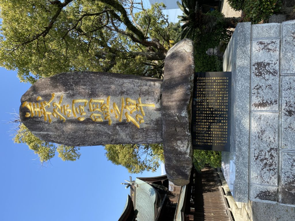 朝ご飯を宿で食べて、すぐに散歩に出た。街中には、数年前の維新博の時に作られた偉人たちの像がいくつも置かれている。歩いていると龍造寺八幡宮という文字に引かれて寄り道する。横から入っていくと、何と義祭同盟の記念碑が建っている。この同盟には幕末維新の佐賀藩を支えた江藤新平、大隈重信、副島種臣らが参加していた。八幡宮の鳥居は石造りで古めかしい。その先の太鼓橋もやはり古めかしい。その横にはなぜか楠木神社もある。
