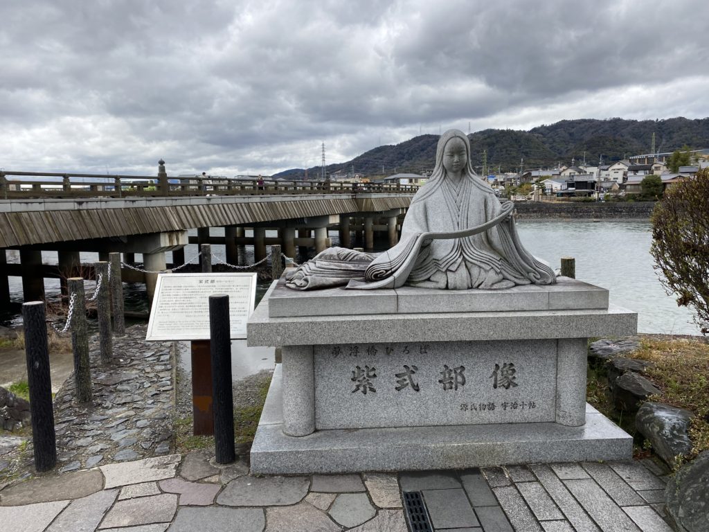 彼女と一緒に宇治橋まで戻る。その径はなかなか風情があってよい。橋の袂には紫式部の像があったが、これまた初めて見た。雨は止んでいたので、帰りは京阪を止めてJRにしてみた。京都で乗り換えようとしたら、何だか電車が遅れており、1つ前の電車に乗ってしまった。だがこれは鈍行、途中で快速に抜かれた。それでも山崎などという地名を見ると何となく嬉しい。