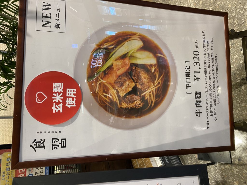 そこにあるのが新農生活。ここには台湾関連の食品、雑貨などが売られており、台湾まで行かなくても台湾が買える場所になっている。埔里米粉から大同電鍋まで、すごい数の物が並んでいる。勿論お茶も何種類かある。そしてその横には食べ物コーナーもあり、牛肉麺などがメニューにある。1320円、高いのかなと思ったが、今や1台湾元=5円の時代。台湾でもちょっといい牛肉麺は250元ぐらいするから、同じぐらいか(開店前で食べておらず、クオリティーは不明)。