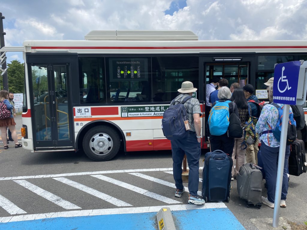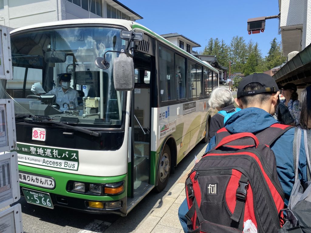 バスは何とかやってきて、高野山駅から乗っていた数人と合わせて13人が乗り込んだ。中国人カップルの2人以外は皆ヨーロッパ人だった。奥の院を抜けると、一路下りに入る。約1時間で護摩壇山に着くと、もう一台のバスが待っており、熊野方面から来た乗客を入れ替えて出発する。若い車掌と話していると『とにかくコロナ前から外国人が多かったが、コロナ後日本人は殆ど来なくなり、今日もあなた一人ですよ』と寂しそうに話す。そしてなんとか英語を使って乗客を捌いて行く。