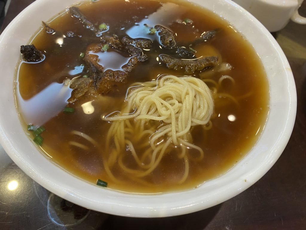三鮮麺は醤油味のスープ。椀はかなり大きく、スープは飲みきれない量だ。麺はあのふにゃふにゃ麺。だから私は上海で麺を食べないのだ、と気づく緩さ。揚げ魚、タウナギ、鶏肉の塊が載っている。いや沈んでいるものもある。脂身は豚だろうか。まあ35元ならこんなものだろう。部屋に戻って料理の歴史の本を見てみると何と徳興館の名前が載っているので驚いた。それほどの老舗とは思えなかったが、何気なく残っているのが実に良い。