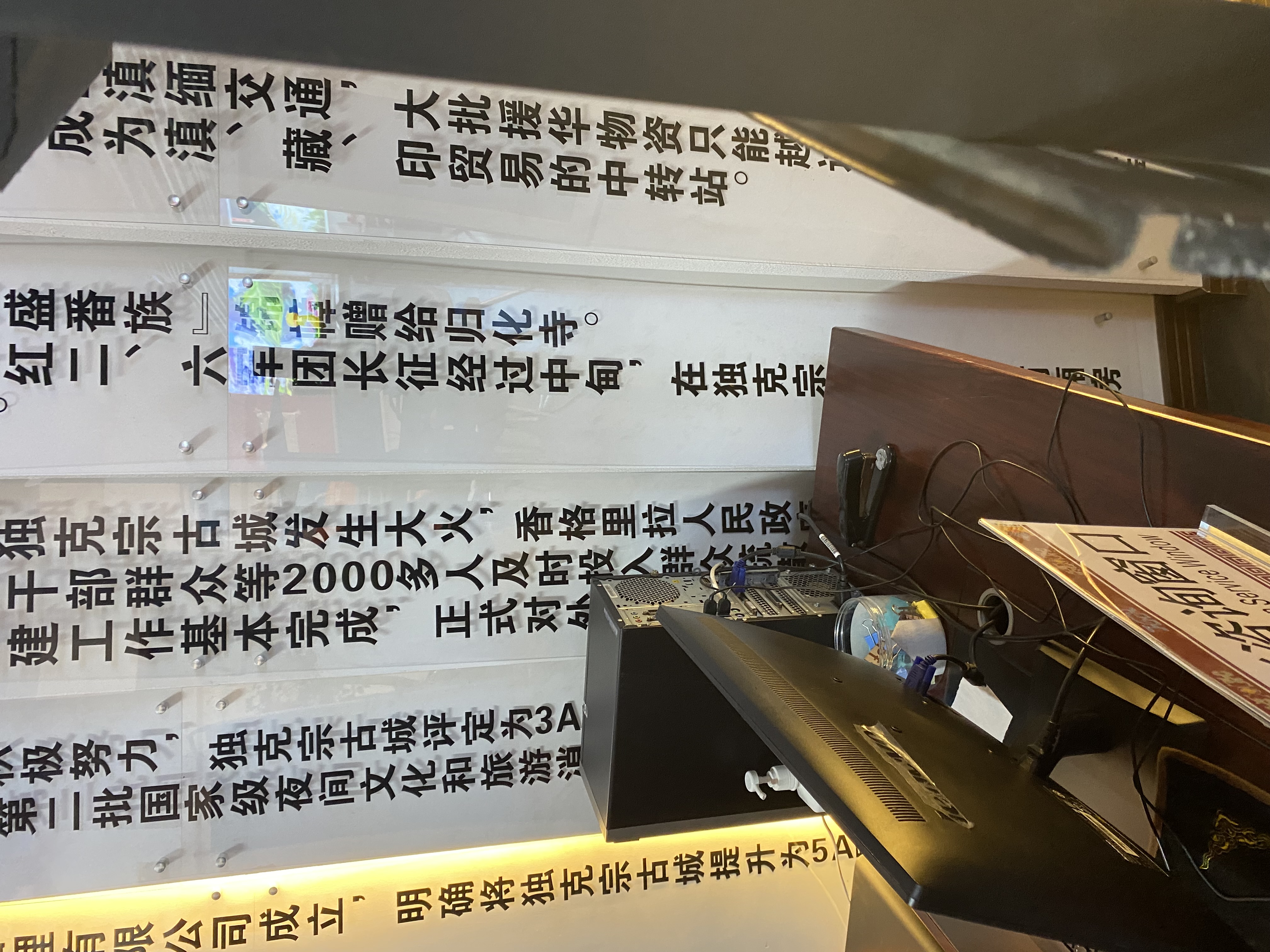 ちょっと休んでから外へ出る。取り敢えず車で来た道と反対を行くと、すぐに独古宗古城という門が見えた。ここから観光街になっており、意外なほど人がいた。そして若者の多くがチベット族の格好をしている。広場に茶馬古道関連の石碑でもあるかと探したがない。観光案内所で聞いても分からないという。そもそも案内所なのに、この地域の歴史展示の前に物が置かれていてよく見えない。歴史を知らせようという意欲はまるでない。