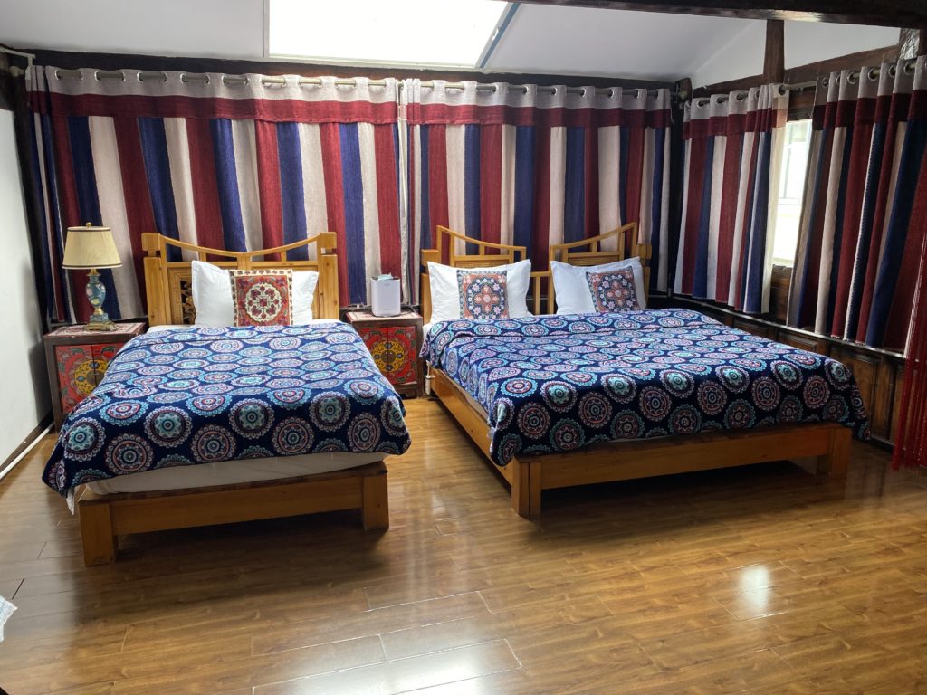 何だか昔の別荘を改築したようなところで家族経営でやっていた。聞けば江蘇省あたりから10年ほど前に移住して始めたらしい。以前は観光客も少なかったが、昨年鉄路が通ったことで、急に人が増えたという。部屋は広くて暖かみがあり、何故か天窓もあった。昨晩ここに居れば月が見られたのだろうか。だが今日は天気があまりよくない。