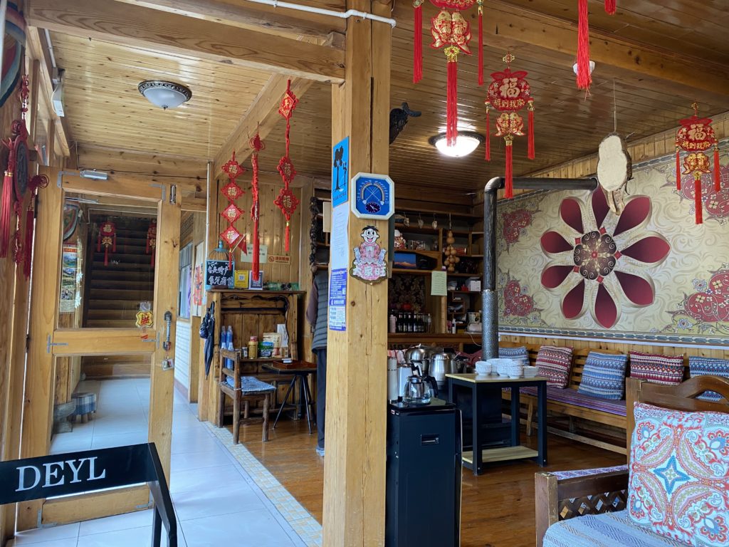朝はかなり冷えていた。8度ぐらいだったらしい。8時頃下に降りると、朝食の準備が出来ていた。ストーブの周りで宿泊客が食べている。出てきたのが、きゅうりの漬物(これはほぼ日本の味)、ゆで卵、トウモロコシの蒸しパン?など、手作り感満載で非常に美味しい。これまでの食欲不振が嘘のようにバクバク食べてしまう。