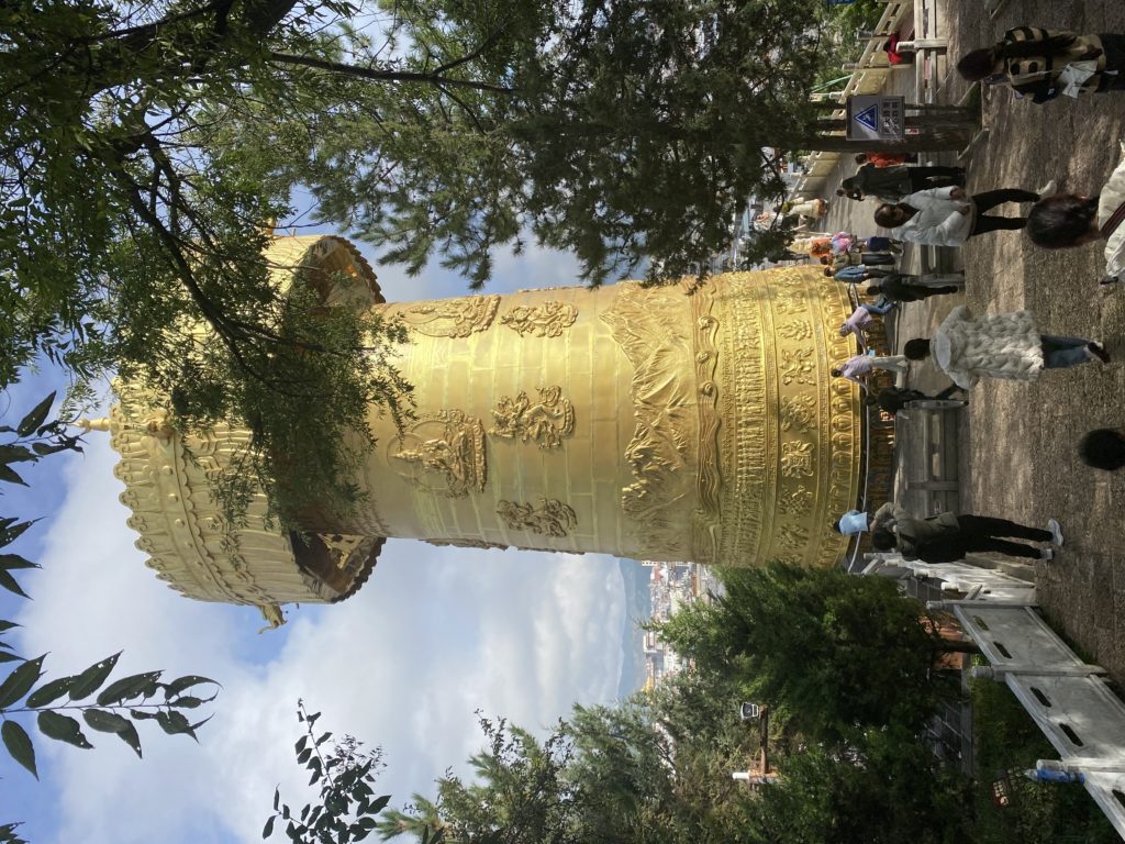 何となく元気が出たので散歩した。今日も曇りだが雨は降っていない。月光広場まで歩いていき、折角だからと亀山公園に登る。ここは公園とは言っても、小高い丘にある仏教寺院なのだ。文革中の被害のせいか、ここもやはり新しい。巨大マニ車などがあり、観光客が多い。眺めも意外とよいので、写真を撮って降りてくる。
