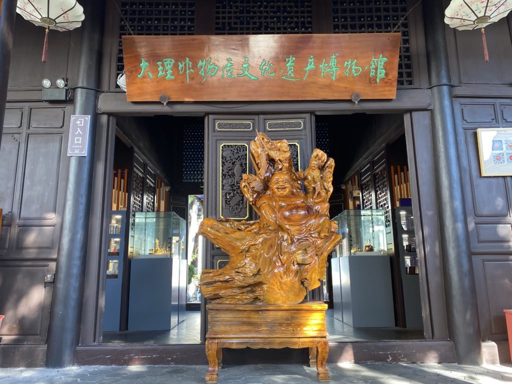 そこから少し歩いて、非物質文化遺産博物館というところへ行った。ここはプライベートなのだろうか。無料だが、かなりこじんまりしていた。その中にも当然雲南茶のコーナーはあったが、大理なので下関茶の話が中心だった。ここを出て車を呼んだが、全然来ない。運転手からキャンセルされたが、どうやらこの場所で乗せるのは難しいらしい。仕方なく少し歩いて行くと、宿にかなり近い場所まで戻っていたが、坂を上るのが嫌で、車で帰った。