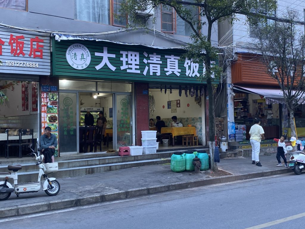昼ご飯を食べていなかったので、何か食べようと外へ出て探した。近所で探していると、交通事故があったようで道が塞がれてしまっていた。駅近くの道に入ると、何と清真と書かれた店が何軒もあった。これが麗江で最初に食べた回族料理なのだろう。確かに大理には回族が沢山いるだろうと思わせる。歩いて10分ぐらいの場所には、清真寺もあったが、それほど目立ってはいなかった。これも現在回族が置かれている状況だろうか。結局回族料理を食べることなく、宿へ戻る途中、雲南麺を食べてしまった。なぜだろうか。
