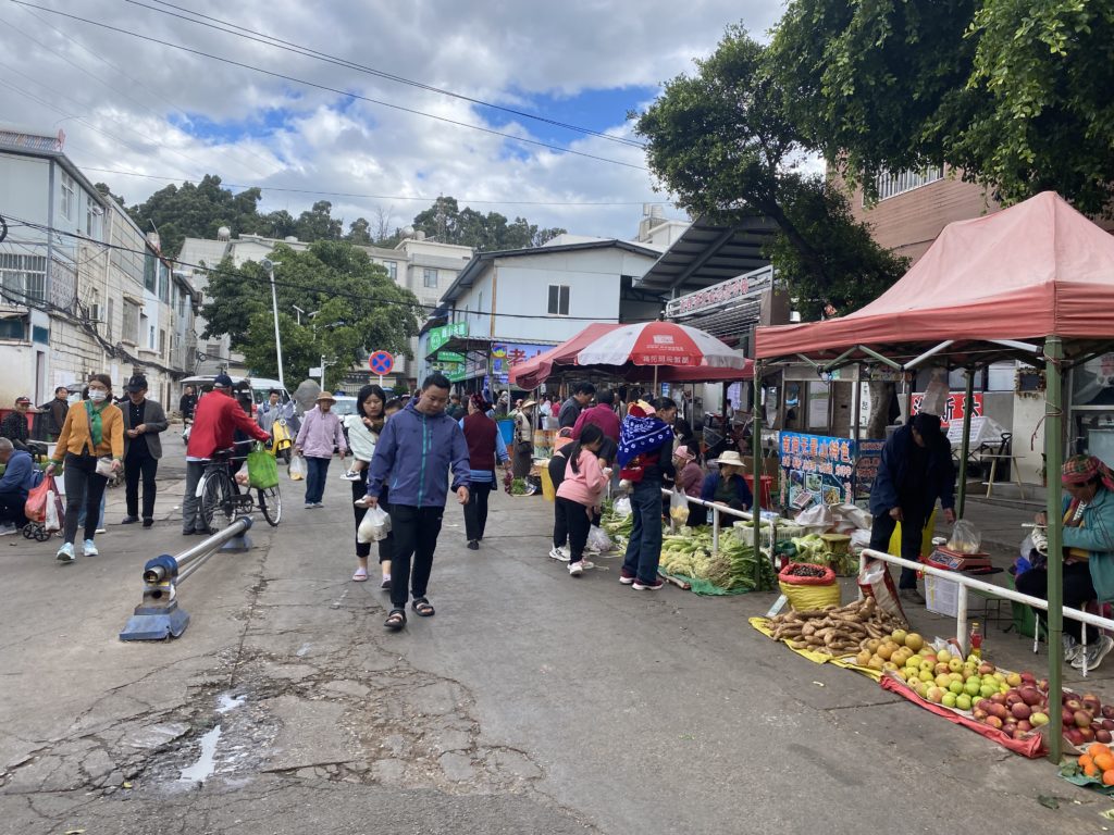 30分ぐらい、そうしていたが、それ以上歩いて行く気力も時間もなく、宿の方へ戻って行く。途中ちょっと寄り道したが、ほぼ想定通りで宿に帰着。12時にチェックアウトして、駅へ向かう。思ったよりはるかに近くてすぐに着いてしまった。私が乗る列車は紅河行だった。紅河とは、ベトナムのラオカイ付近まで行くということだろうか。以前ハノイから滇越鉄道でラオカイまで行った時、この先はどうなっているのか知りたいと思っていた。次回はこっちへ行こう。