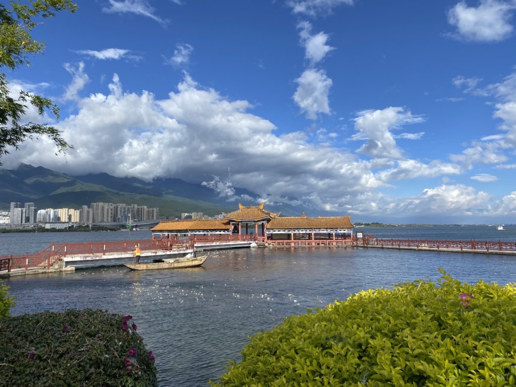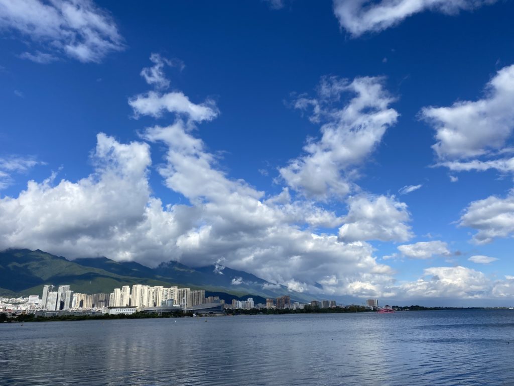 洱海は実に大きかった。しかも湖の色が鮮やかで、湖面と空の関係が美しい。所謂インスタ映えする。多くの観光客がおり、皆が写真を撮っている。標高2000mの湖とはこのようなものか。周囲に少しずつ建物が建っているのは気になるが、取り敢えず現時点では眺めているだけでよい。