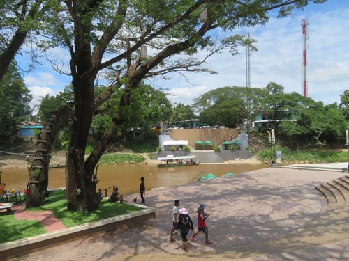 その横にレストランがあり、そこにはランチを食べるお客がいた。料理はやはりタイ料理。結構上品でうまい。ススは美味いものがある場所をよく知っている。アイちゃんもご機嫌で食べている。外には川が見えるが、その狭い川幅の向こうはタイだった。ここなら夜、ちょっと川を渡ればすぐにタイに行けそうだ。密航者はいるだろうか。