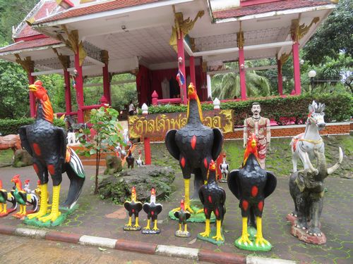 まずは鶏の像が沢山置かれている寺へ。ここはミャンマーの王様が関係して建てられたお寺だという。この付近は昔、タイの王朝に支配されたり、ミャンマーに入ったりと、随分時代に翻弄されたことだろう。そんな中で今のタイ人にもミャンマー人にも崇拝されるお寺、素晴らしい。