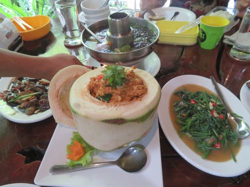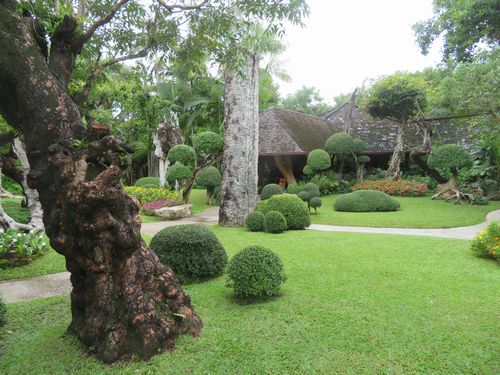 お昼は郊外のとても雰囲気の良いレストランへ行く。大自然の中にある、という感じなのだが、庭などは非常に人工的でちょっと日本の庭園管理を入れているのかと思うようなアンバランスな印象。トイレの作りも変わっていて、アイちゃんはお気に入りらしい。ちょっとしたテーマパークのようにも見える。タイ人にはとても人気のあるところだという。確かに従業員の対応などは良い。