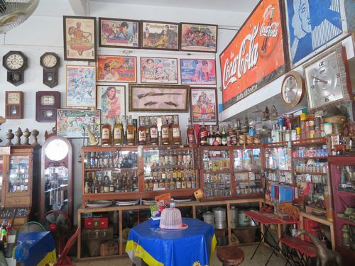 もう午後2時頃だが、腹が減ったので外へ出た。さすがに日差しが強くて、あまり歩く気にはなれない。すぐ近くに麺屋があり、うまそうだったので店頭でオーダーして中に入った。店主は髪を後ろで束ねた男性で一風変わっていた。店の中を見てびっくり。まるで骨董屋かと思うほど、古いビールやウイスキー、コーラのビンが飾られていた。反対側に何と仮面ライダーのフィギャーがいくつもあった。これはもうオタクの域を超えている。全て店主のコレクションらしい。食べ終わるとその横の市場でTシャツを2枚買う。