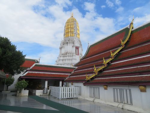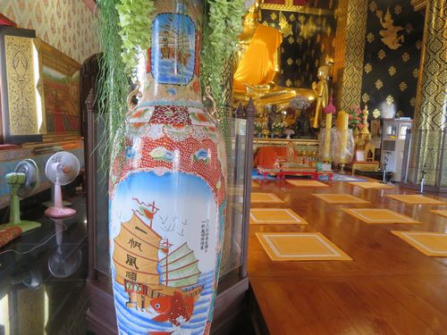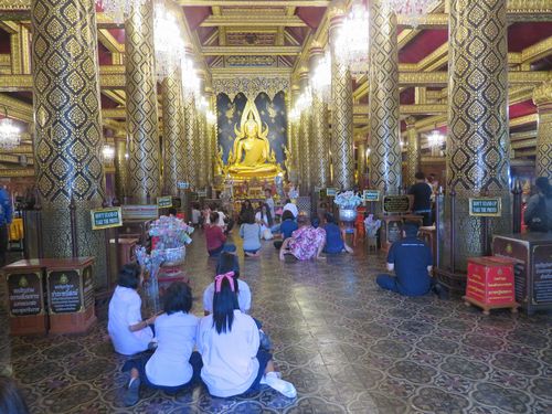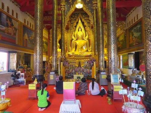 もう一つ、もっと大きな寺があった。ワット・プラスリラッタナーというお寺。こちらにはここピサヌロークを治めた王の奮戦ぶりが描かれた絵画が飾られていた。仏塔も見える。本堂には大勢いの信者が集まっており、エアコンが効いているので、皆座り込んでおしゃべりしている。寺の機能として、皆が集まる場所、というのもあるかと思う。私も又ここでかなり座り込んでいた。だんだんお寺で座っていることに快感?を覚えるようになってきた。なぜだろうか。
