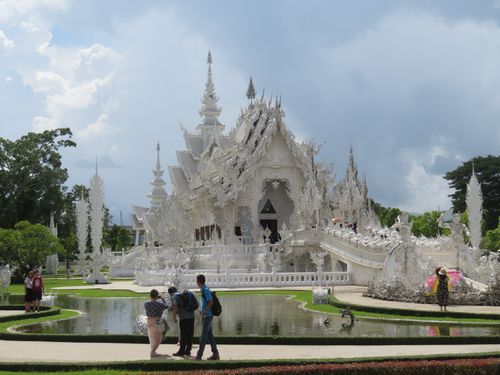 少し時間が余ったので、観光に行く。ワット・ローンクン、ここはアーティストが私財を投じて設計したというだけあって見事な白の寺院がある。基本的に鮮やかな金色が多いタイの寺では異彩を放っている。ここは観光客も多く、外国人は入場料を払う必要がある。寺院内は涼しいが、相当暑くなってきており、水分補給が重要だった。