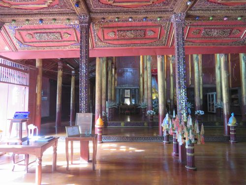 ワット・ジョムサバーン、このお寺は素晴らしかった。1850年代に創建されたが、その後イギリス商人の支援もあり、1930年代にビルマ式を導入して、木造の立派なお寺が出来たという。石段のところにいるおばさんに一礼して上がると、本堂は天井が高い。そこは何となく日本の寺のようであり、懐かしい感じがして、何かに包まれたようにしばし動かずに仏像を見つめた。