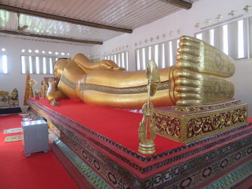 最後にワット・プラノーンというお寺へ行く。ここが一番有名らしく、観光バスも停まっていた。800年代の創建となっているから古い。この街の守り寺かもしれない。ここには室内に立派な涅槃仏が安置されていた。それを見終わると川沿いにフラフラと歩いてホテルに戻った。結構疲れたので夕方までゆっくりと休む。