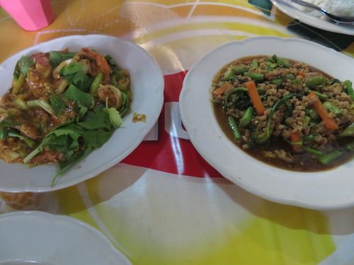 昼になると下へ降りていき、Yさんたちとランチを取るのも恒例となっている。Yさんのところのタイ人スタッフが、ちゃんと席を確保して、メニューを選んでくれるので何とも安心できる。3-4人で食べて一人60バーツ程度と激安、激ウマなのがよい。その後、Yさんのオフィスにコーヒーを持ち込んで飲むのだが、その値段が55バーツだから、物の価値が分からなくなる。