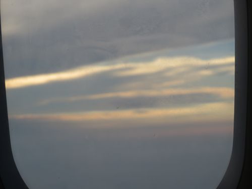 バンコック行のフライトは本当にガラガラだった。だが成田で既に発券されたチケットには窓側の座席が指定されていた。CAに『通路側でお願いしたんだけど』というと、ドアが閉まったら、どこへでもどうぞ、と言われる。最近は指定された座席にしか座ってはいけない、と言われることもあったので、有り難く移動した。また機内食が出る。食べる。これは完全な赤字路線だ。夕日がきれいだ。