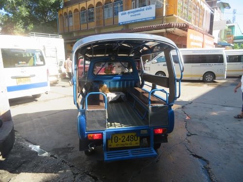翌朝もロビーで軽く食べて、チェックアウトした。今日は少し北上してチュムポーンへ行くことにしていた。昨日確認したところでは、バスターミナルの一番端から、ミニバスが出ていた。恐らく朝は便が多いと思い、9時前にホテルで呼んでもらったトゥクトゥクに乗って行ってみた。