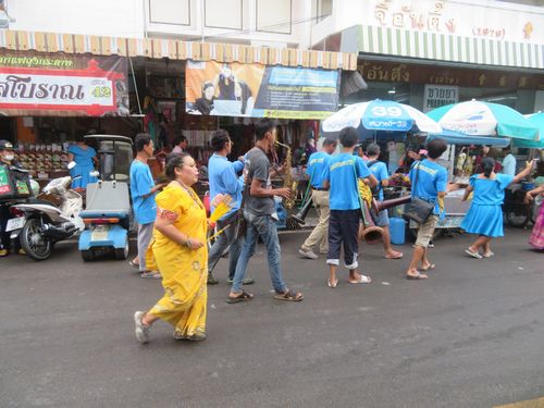 宿の近くを歩くと、そこには野菜や魚を売る市場があった。その前を楽器を鳴らしながら歩く一団がいた。派手な衣装を着たおばさんが踊りながら歩いて行く。何をしているのかはよく分からないが、商売している人のところに寄っていくから、なにがしかをもらっているのだろう。