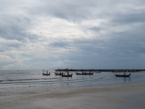 ビーチに行くと岩が多く見られた。ホアヒンとは『石頭』という意味らしい。結婚式の写真撮影なども行われ、静かな夕暮れが見られた。少し歩くとヒルトンホテルがあったが、そこから上がることもやはり優しく止められ、その横から登ってみると、何と清水祖祠が観音廟と並んであるではないか。ここもやはり福建、それも安渓系華人が多いことを窺わせた。向こうを見ると、小さな漁港のようになっており、ここから上陸したらしい。