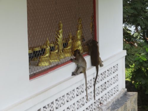 少し歩くとビーチに着く。そこには岩山があり、よく見るとかなり立派な観音像が建っていた。取り敢えずそこを参拝する。皆が階段を上って行くのでついていくと、廟がある。その付近には猿が沢山いて、ちょっと怖い。更にそこを上って行くと、海がよく見えた。しかも下には廟があったので、そこまで歩いていき、敷地に入った。だが廟は頂上にあり、階段が凄かったので、行く気力はなく、坂を下った。