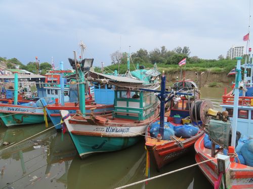 下は小さな漁港になっており、今では観光客用の魚市場、そして魚料理の食堂になっている。ここには中国人もいて、盛んに魚を買って調理法を指示していた。ソンテウの場所まで戻り、また10バーツで乗る。宿近くで降りて、その付近の廟とパレスを散策する。そのあたりには観光客用のバーが沢山あり、夜は賑やかなのだろう。帰りに麺を食べて宿へ。その辺からかなり強い雨が降り、外へ出るのは止めて、部屋でバレーボールを見て過ごした。