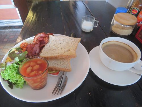 パーイにはいかにもブレックファースト、と言った感じの朝食を出す店は沢山あると思っていたが、日曜日のせいなのか休みのところも多く、またベジタリアン、ビーガン用など特殊なところもあり、手頃なところはなかなか見つからなかった。ちょっとしたカフェを何とか見つけて、アメリカンブレックファーストを食し、心が落ち着いた。さて、いよいよチェックアウトして、出発だ。