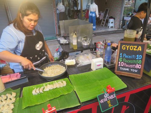 一旦買った物を持ち帰り、暗くなった頃に夕飯に出た。この付近、ホテルも多く、観光客、中国人や韓国人も沢山歩いていて、かなり賑やかだ。夜市もあり、そこでパッタイを食べたが、何だか物足りずに、屋台の餃子も食べてしまった。タイでは焼き餃子のことを『ギョーザ』と発音する。焼き餃子は日本からの渡来品であり、外来語だ。