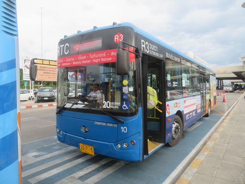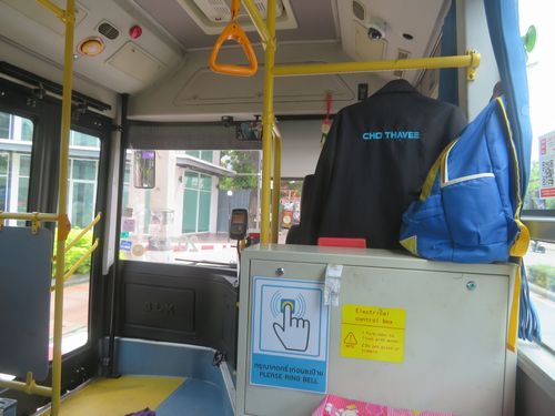 あまりに暑くなったので、引き上げることにしたが、また歩いて帰るのはさすがにしんどい。そこへバスが見えた。最近チェンマイ市内に我々でも利用できそうな路線バスがいくつか走っている。是非乗ってみたいと思い、バス停で待ってみたが、何と通り過ぎてしまった。乗る場所が違っていたらしい。ようやく乗り込むと20バーツ払う。乗ったバスは宿の近くのショッピングモールまでは行くので、有り難い。しかもバンコックのBTSで使っている、ラビットカードで乗れるので現金もいらない。