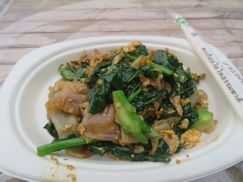 何とかショッピングモールまで来てバスを降りる。そこにも屋台街が出ていたので、焼きそばを食べる。これが意外とうまい。料金も40バーツだけだ。ちょっと早いが宿から荷物を取り出し、バスターミナル行のバスに乗るつもりで、バス停で待っていたが、時刻表通りには来なくて焦った。何と30分も過ぎてから来るのだから、やはり当てにはできない。早めに出てきて正解だった。