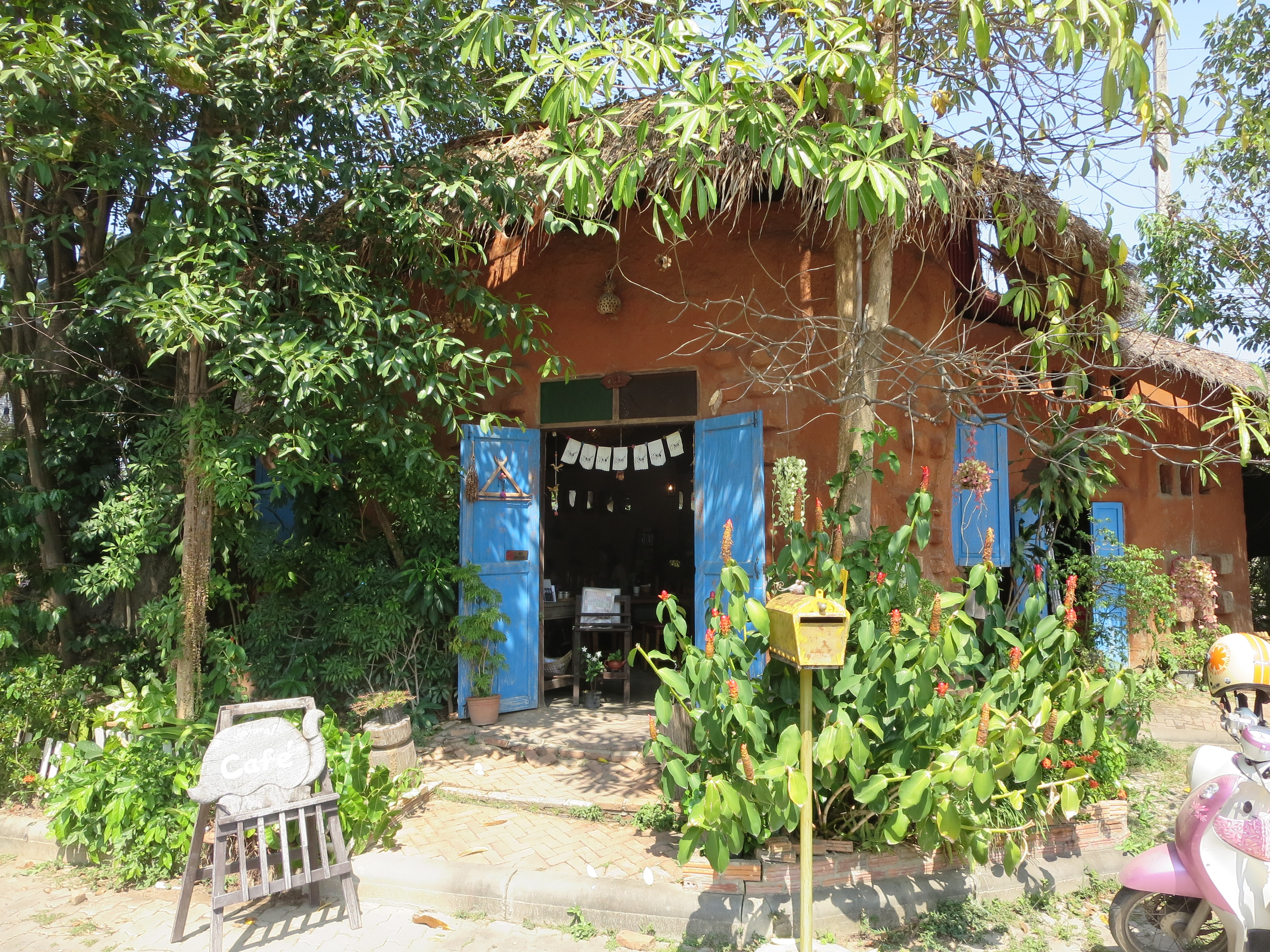 昨年11月に訪れたチェンマイ。そこでなぜかゆるカフェ巡りをした。そしてたどり着いたのが、この土の家、Din Dee。チェンマイ大学の校内にある。ここの抜群の緩さ、一度で魅了された。今回行くと更に土の家が草深く?なっていた。雨季が近づいているからだろうか。ただ前回と違い、土曜日のせいか、お客さんがそこそこにいた。午前中ということもあり、午後の気だるい雰囲気はなく、午前の爽やかな状況だった。それもまたよい。
