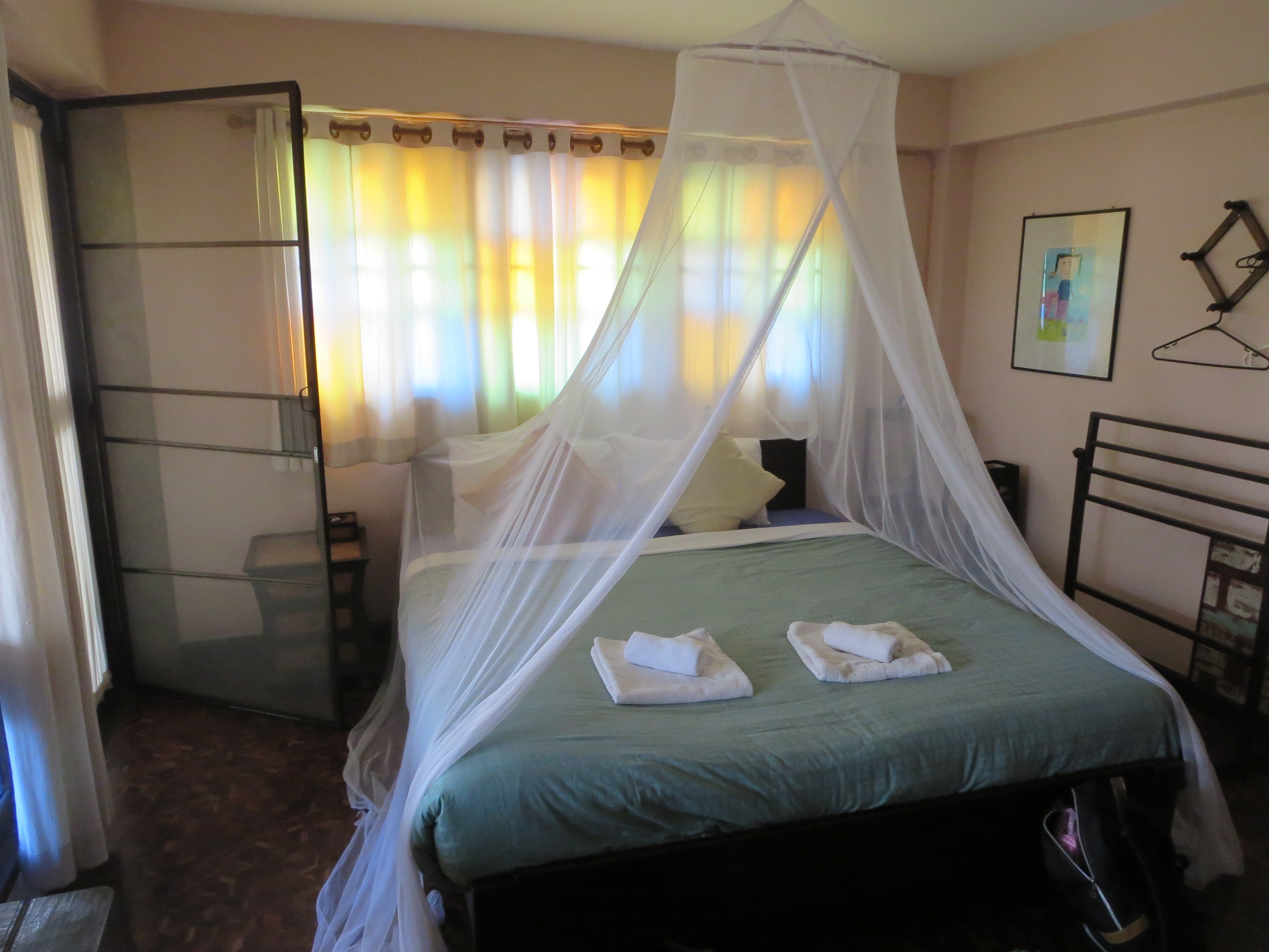 この宿、基本はゲストハウスだが個室。そして今回はなぜかほぼ満室で空いていたのは一番良い部屋のみ。仕方なく普通の部屋の2倍以上払ってここにチェックインしたが、何と部屋は広く、更に広いバルコニー?があり、ベッドもフカフカ。普通の部屋は明るくないが、ここは大きな窓から空が広がる。たまにはそのGHの一番良い部屋に泊まってみるのも悪くない、と今回の体験で思っている。