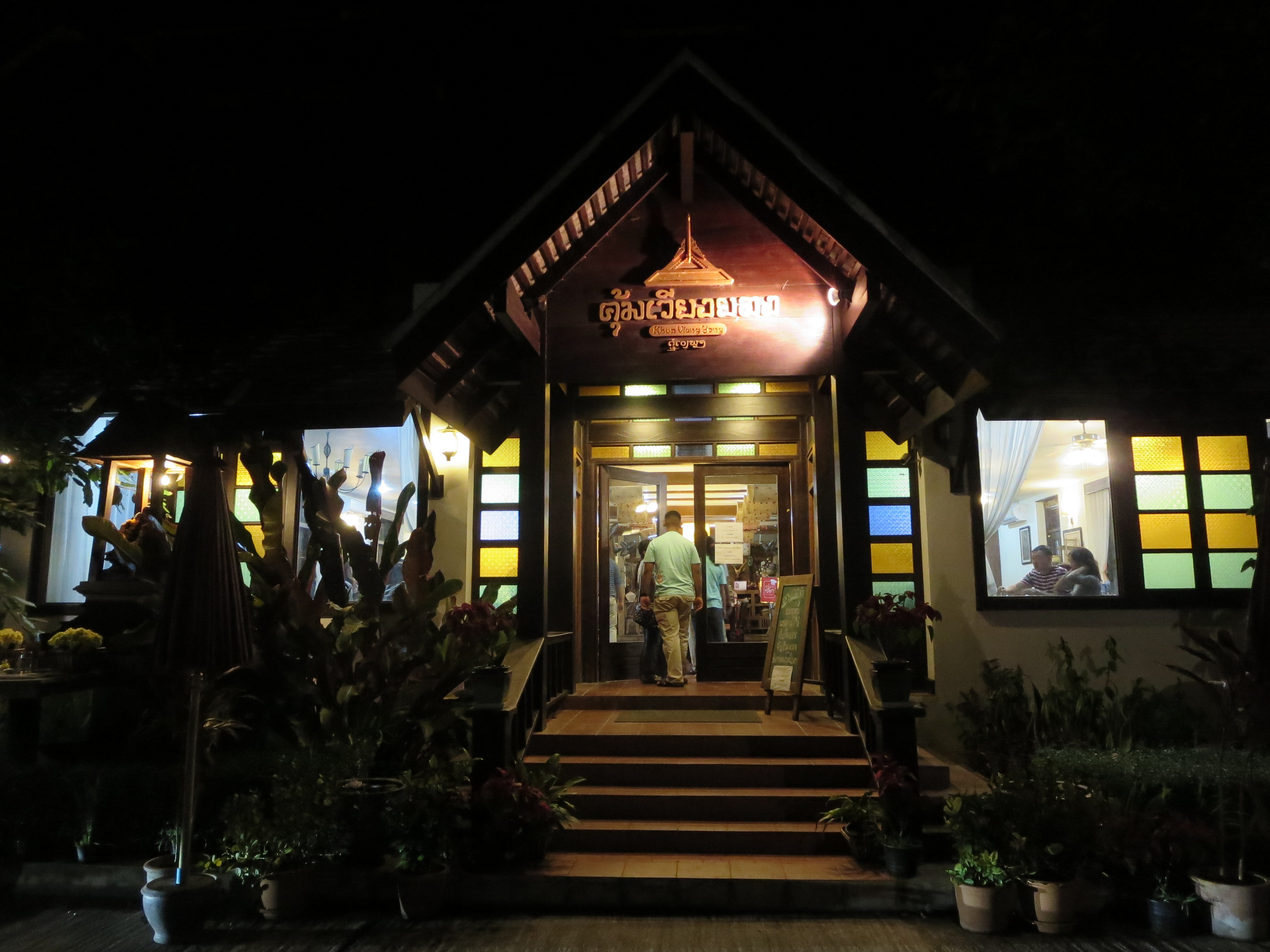 着いたレストランは宿とは城内を挟んで反対側だった。この付近にはお洒落な建物が増えてきている。タイレストラン、家族連れで満員だった。チェンマイソーセージが美味いというので食べてみたが、なるほどジューシーでピリ辛。これはビールのつまみに最高だろう。パッタイなども食べて、大満足。Pさんに感謝。