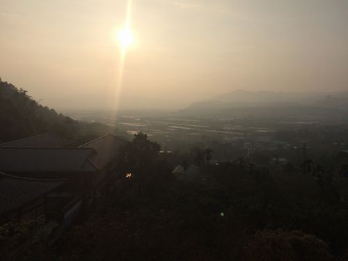 ここから埔里の街が一望できる。夕日がきれいに落ちていく。ここには大仏しかないが、寺はどこにあるのだろうか。むしろ大仏しかないこと、そして誰もいないことが、心を落ち着ける。しばらく、何もせずにただただ風景を眺め、聞くともなく、音に聞き入る。ここにはこの大仏の由来も、この宗派についても、殆ど何も書かれていない。