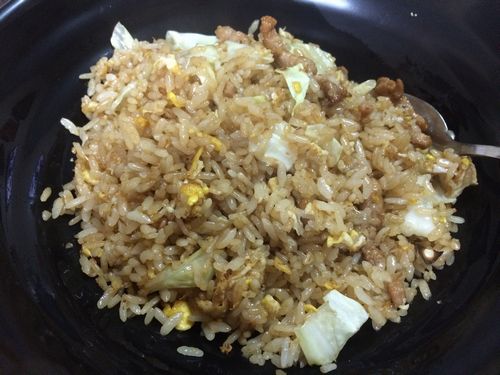麻油炒飯と書かれているが、何のことだろう。聞いてみたかったが、店員はいない。地元の常連さんが『そこの紙に自分でオーダー書いて、厨房へもってけ』というではないか。持っていくと、『そこに置いといて』と素っ気ない。果たして作ってもらえるのか。ちょっと時間はかかったが、チャーハンが出てきた。見た目は美味しそうだ。だが何か麻油かはわからず仕舞い。スープは無料で付いてくるのでまあいいか。