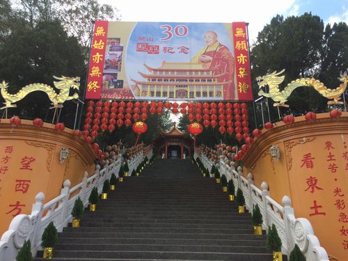 埔里になぜ大きな寺が多いのかという謎は前回の中台禅寺でも考えたが、答えは得られていない。もしやここに来れば何かわかるかも、という期待もあった。入口に自転車を停め、坂を上り始める。かなり急な階段には『開山30周年』と書かれている。やはりここの歴史も30年程度だった。恐らくは台湾政府の政策と何らかの関係があるのだろう。