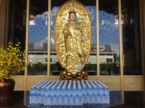 この小高い場所から眺める埔里の街は爽快だった。その背後には新しい大雄寶殿、そこに立っていると先ほどの女性が現れ、『108回念仏を唱えたら、お水がもらえますよ』と笑顔で言って去っていく。観音様に向かって念仏を唱えようとしたがうまくできずに諦める。信心が大いに足りない。