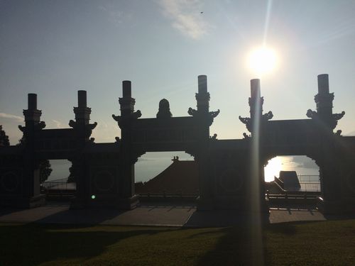 正月飾りも眩しい文武廟は三段になっている。龍の階段があるのは中国と同じ、かなりキラキラした感じだ。一番上まで登ると、かなり疲れるが夕日が沈んでいく中、全貌が見える。降りていくとバスが来たので、乗り込む。ここではかなりの乗客があり、座れないほど。水社に戻り、埔里行きのバスに乗り換え、日が落ちる前には埔里に戻った。