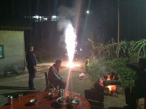 食事を食べろ、酒を飲めと親切に勧めてくれるが、既に腹が一杯であり、酒は飲めないので手持ち無沙汰になる。親戚同士の会話にもついて行けないところがある。葉さんは子供のために花火を打ち上げ始める。たき火で焼き芋を焼いているのは、昔の日本を思い出す。焼き芋を食べていると、おじさんの一人が『うちはお茶を作っているから、家で茶を飲もう』と誘ってくれ、車で別の家に移った。おじさんには8歳の女の子が一緒だった。そういえばこの方、先日の尾牙の時も色々と親切にしてくれていた。